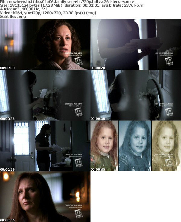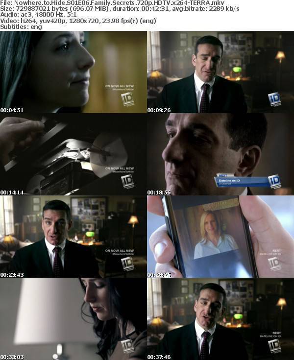 Release name: Nowhere to Hide S01E06 Family Secrets 720p HDTV x264-TERRA
